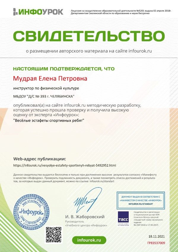 Статья: "Эстафета- увлекательная игра для детей дошкольного возраста" 25.11.2021г