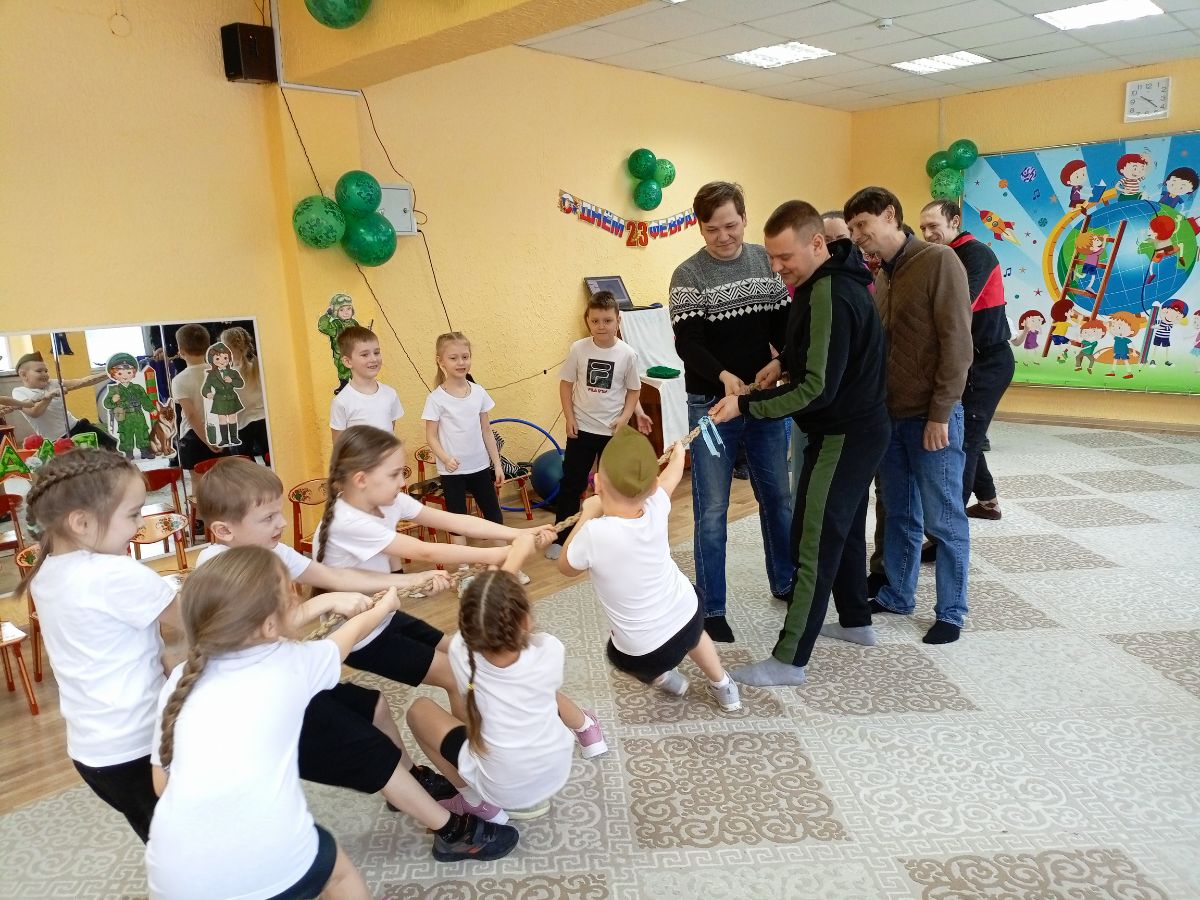 На праздник,посвященный Дню Защитника Отечества, были приглашены папы. Папы играли со своими детьми. Были артиллеристами, военными врачами, "папавозами". Проявили себя смелыми и сильными мужчинами. Дети переживали за своих родителей, хлопали в ладоши, радовались. Дети старались - маршировали, как настоящие солдаты, пели песни про Российскую Армию, расказывали стихи, бегали военные эстафеты. Воспитатели поздравили отцов и дедов с праздником 23 февраля и пожелали здоровья, успехов в воспитании детей, благополучия в семье и мира